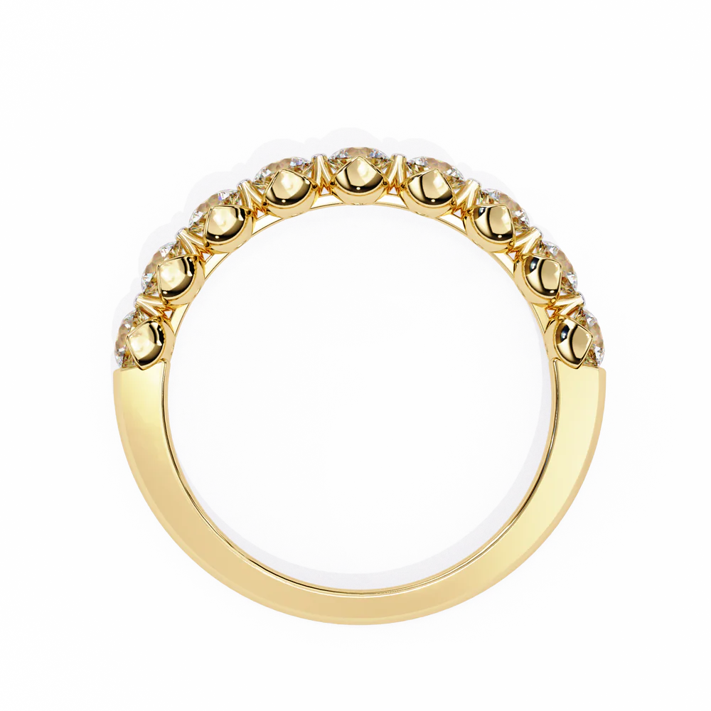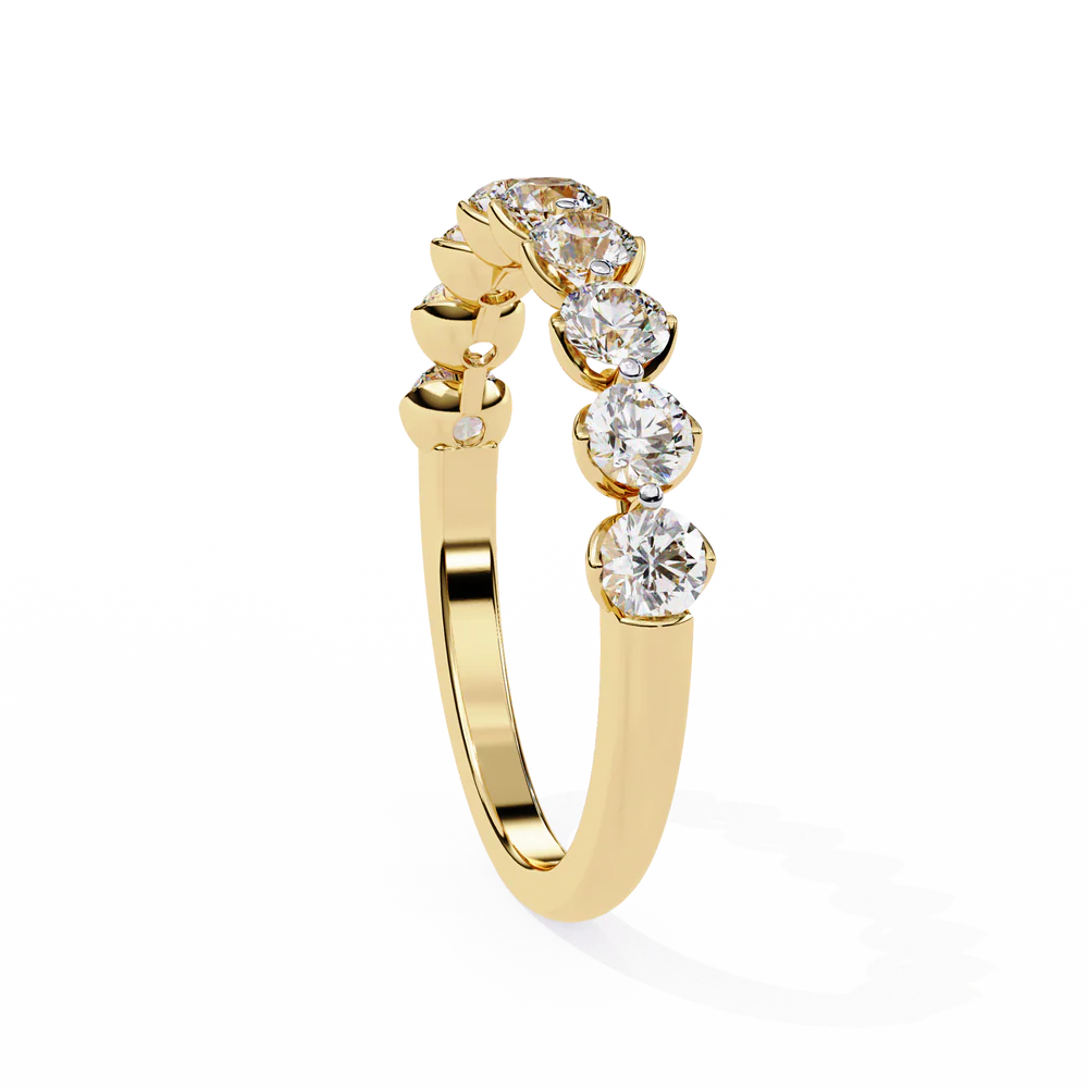 An elegant 0.97 carat lab grown diamond band with radiant round-cut stones. With its classic brilliance and sustainable origins, this piece is made for effortless stacking or a subtle statement of ethical style.