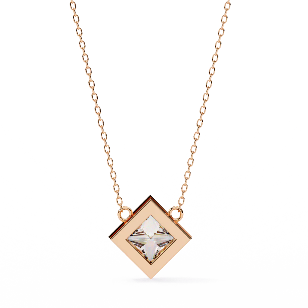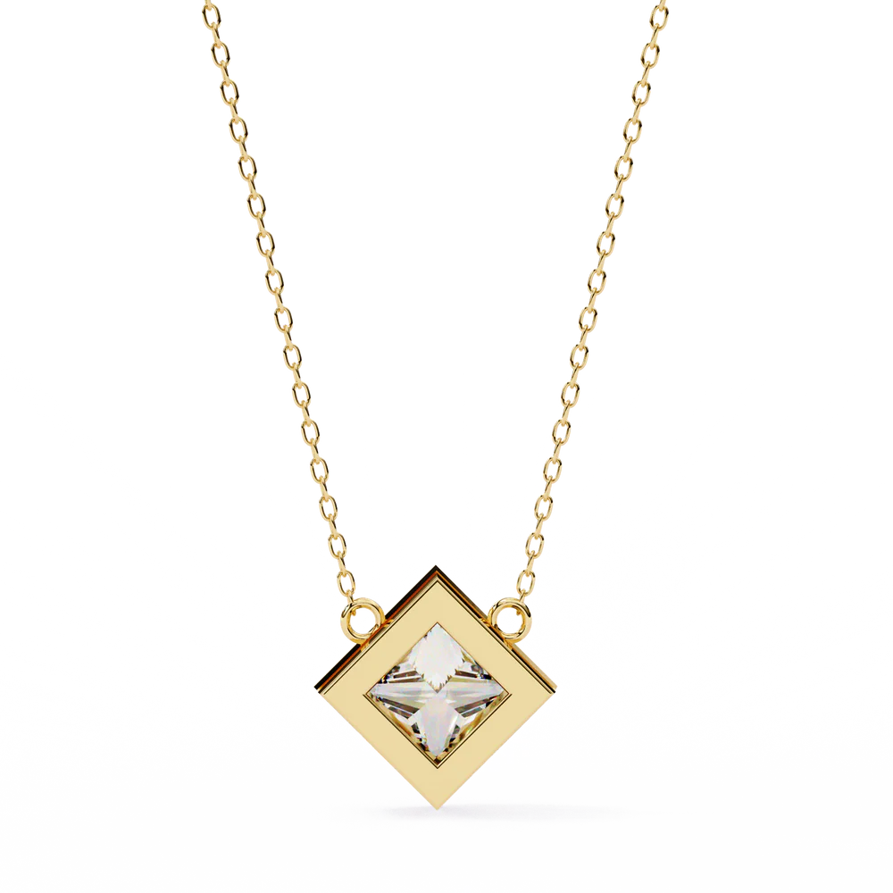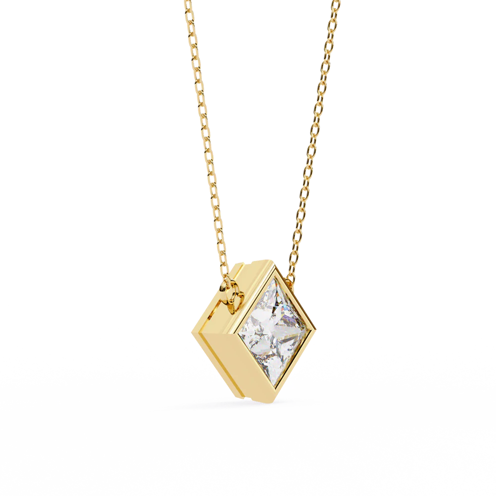 A striking 2.01 carat princess-cut diamond pendant, crafted with lab-grown brilliance. This bold yet refined design captures timeless geometry with a touch of sustainable luxury.