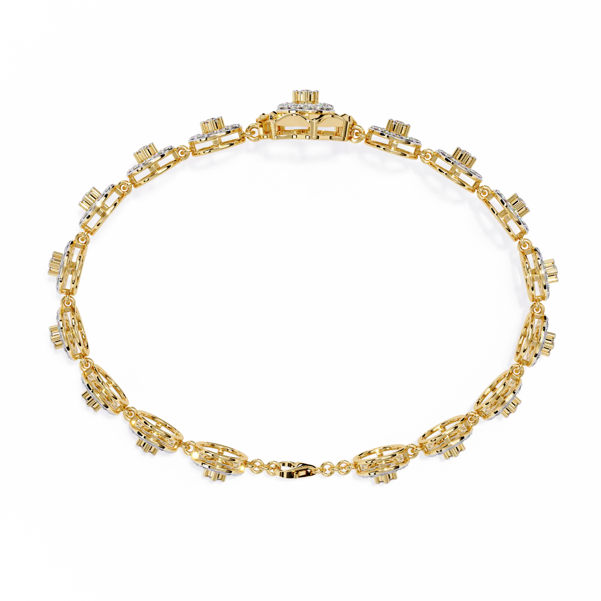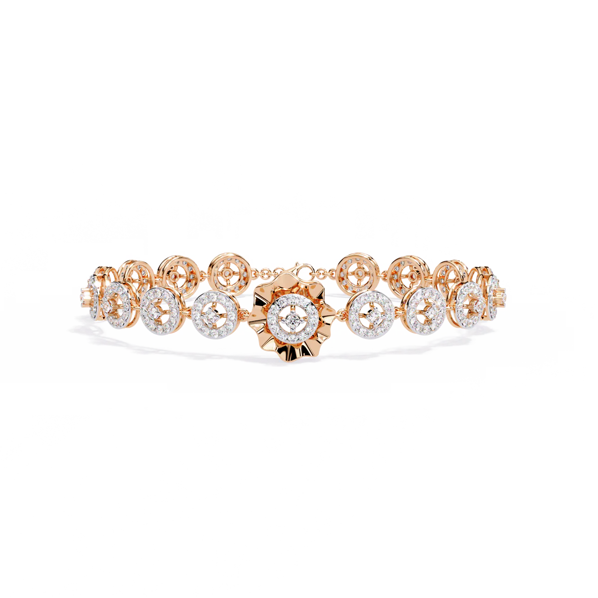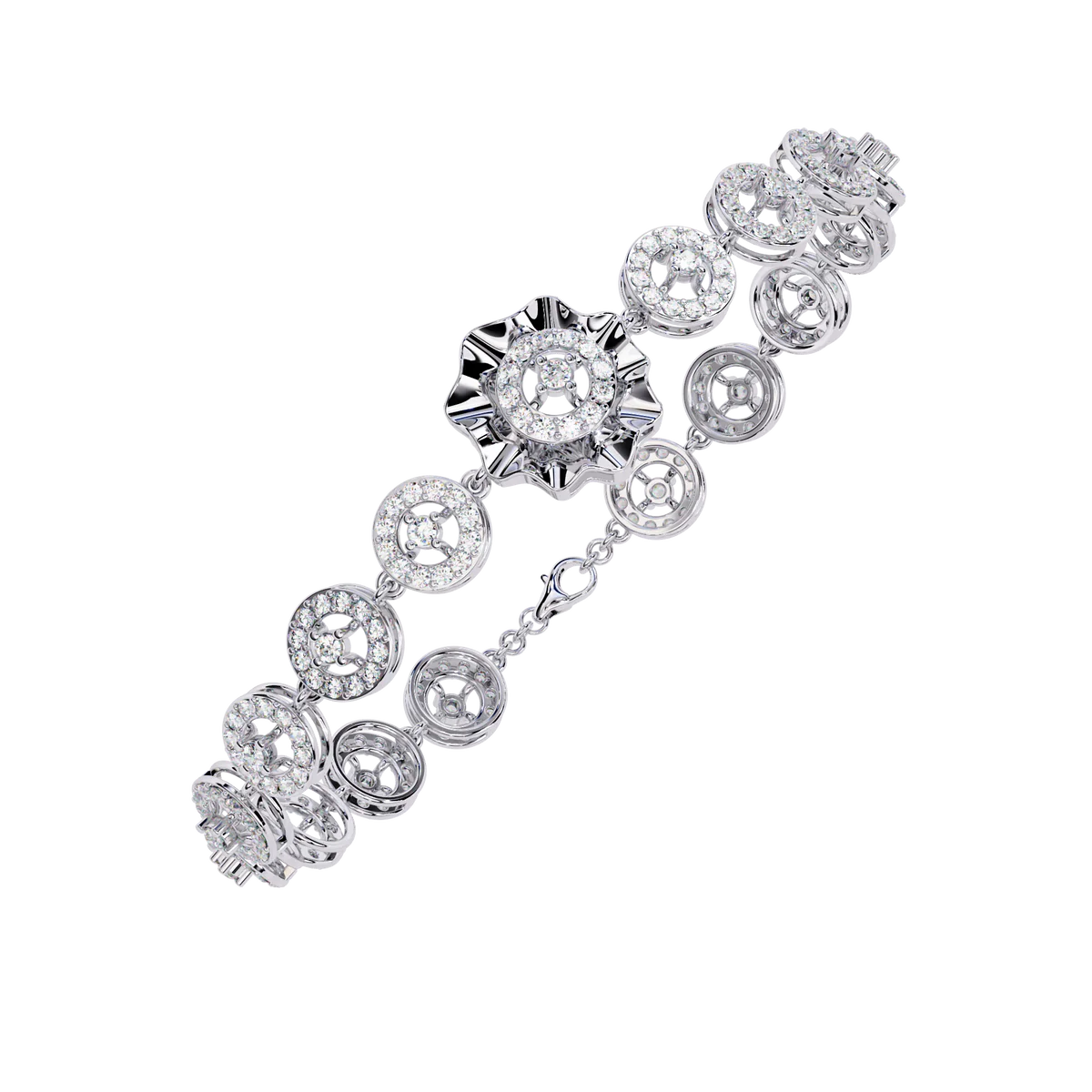 This 2.16 carat round diamond bracelet flows with layered brilliance, creating a softly dramatic, high-shine silhouette.