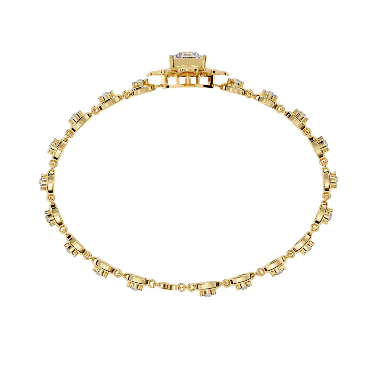 A modern 2.11 carat bracelet featuring a blend of round and princess-cut diamonds, set in 14K gold. Designed for those who seek bold brilliance with sustainable style.