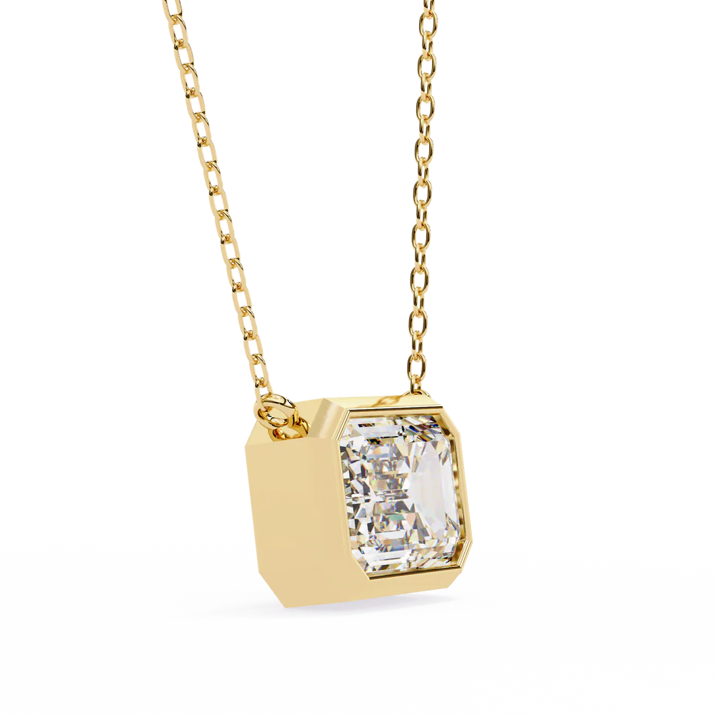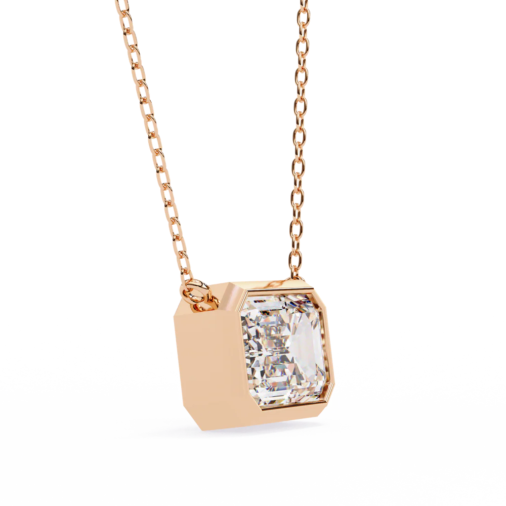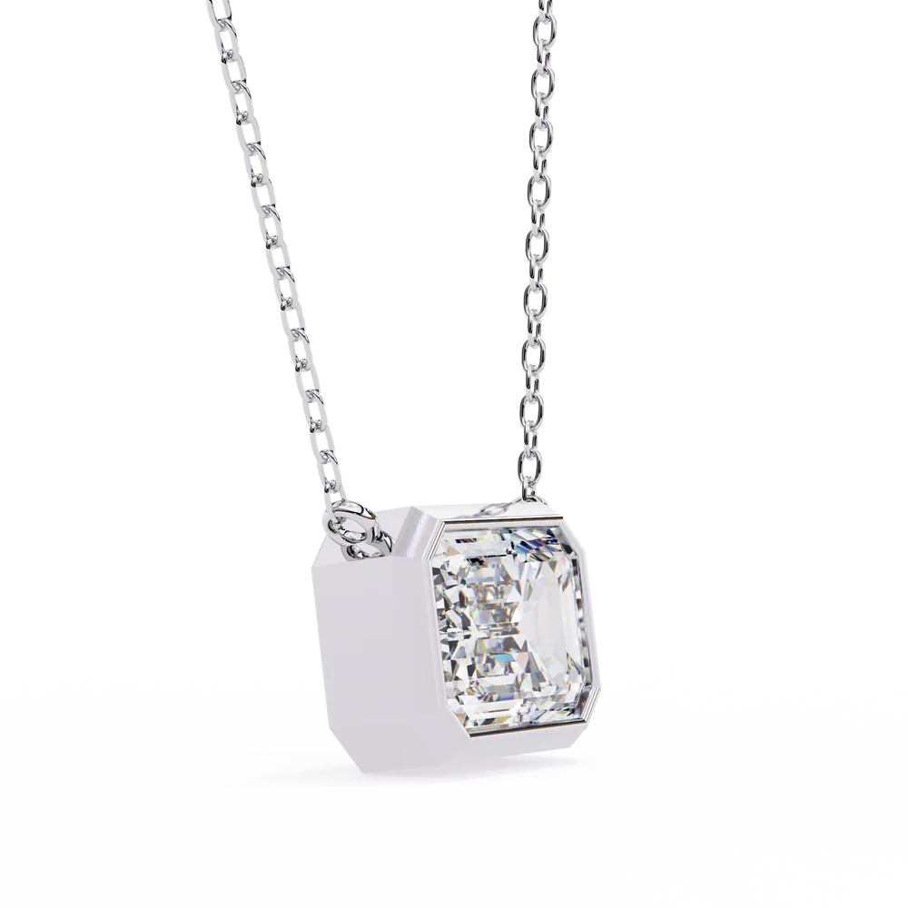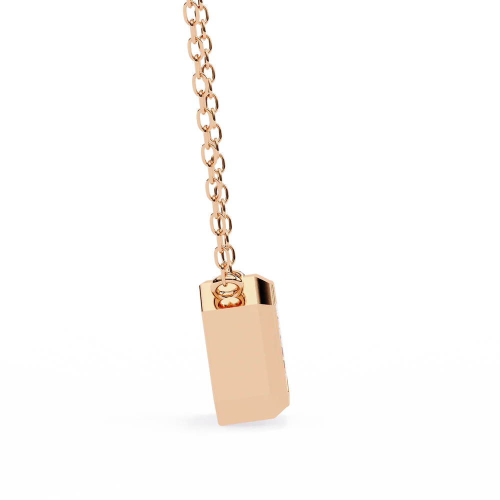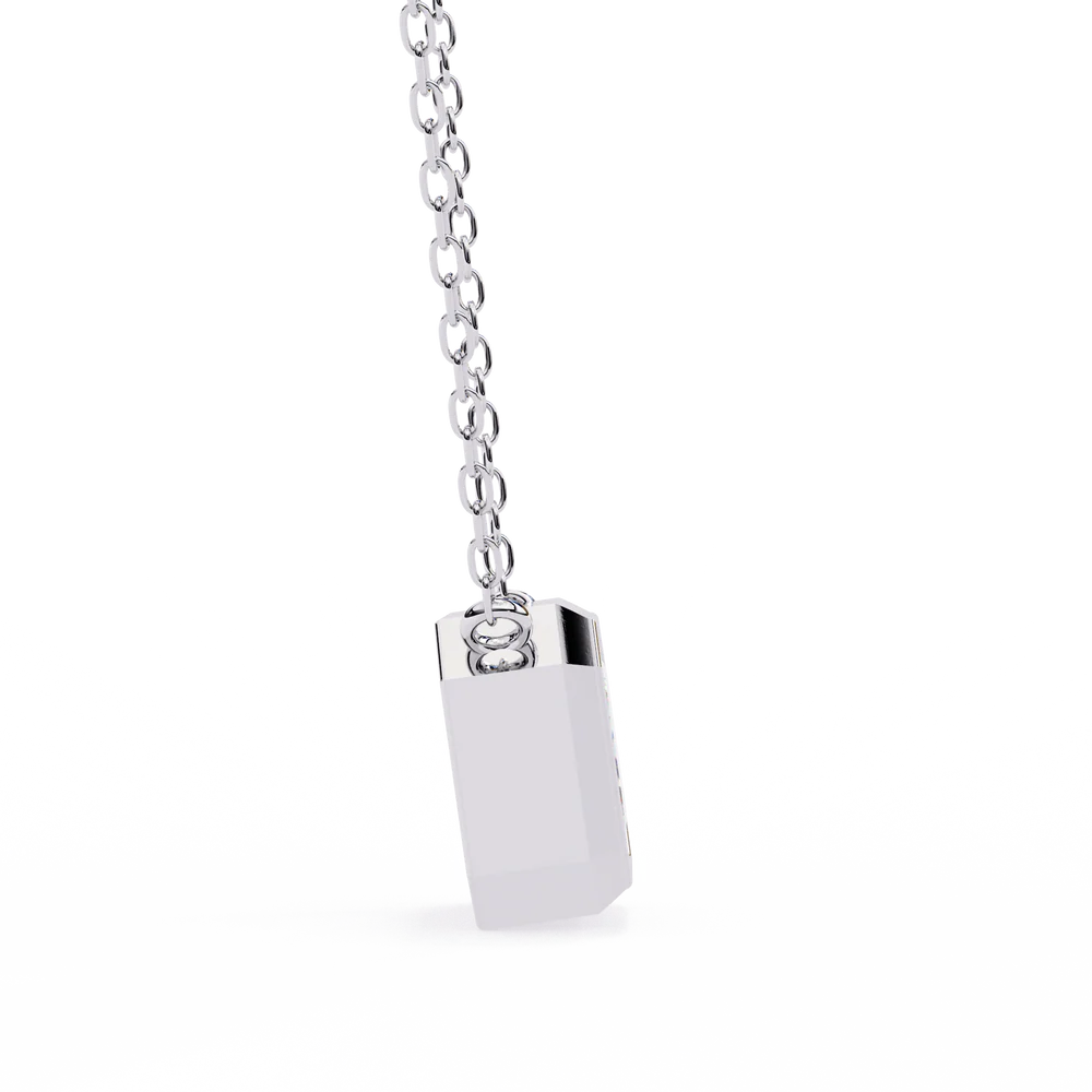 A 0.78 carat emerald-cut pendant that exudes subtle elegance with a geometric edge.