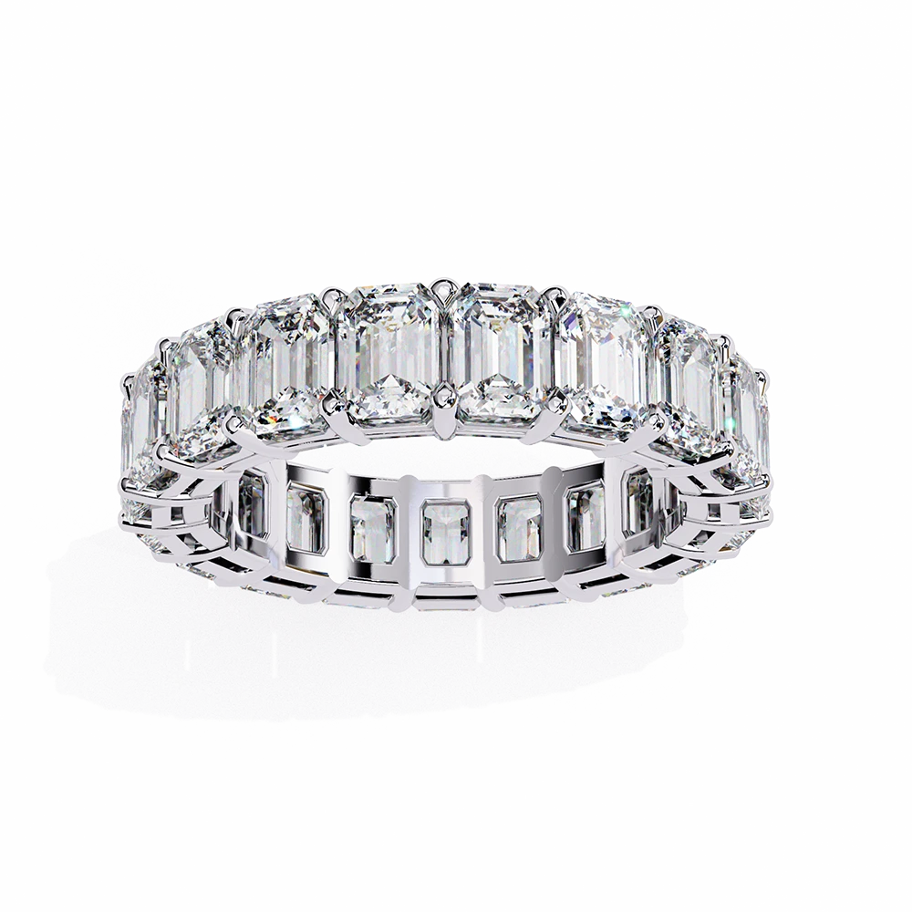 An elegant emerald-cut 4.88 carat lab grown diamond eternity band, perfect for making ethical luxury your everyday signature.
