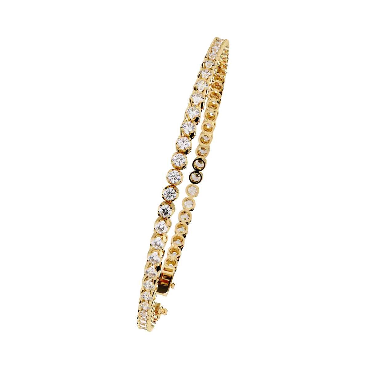 A high-impact 2.62 carat bracelet of round diamonds set in gleaming 14K gold. A true statement of responsibly sourced luxury for those who love timeless shimmer.