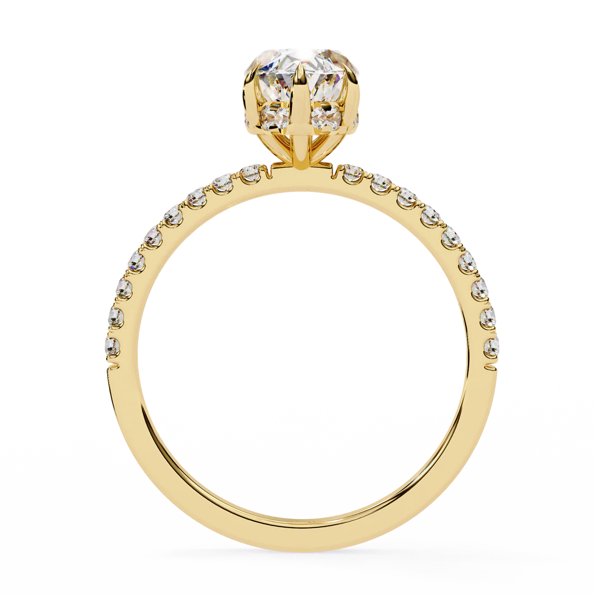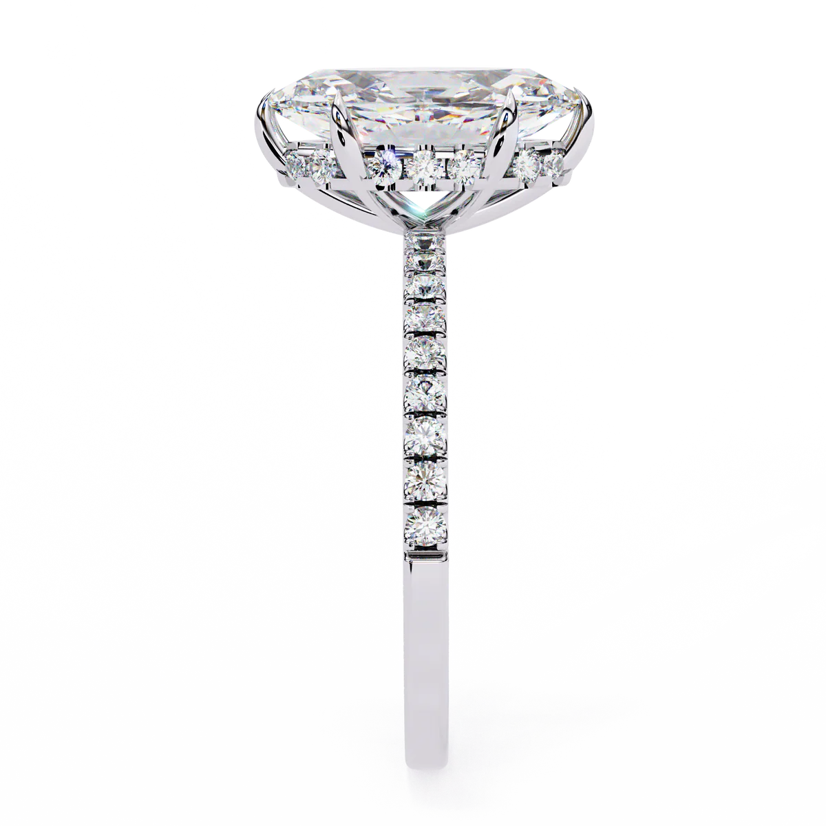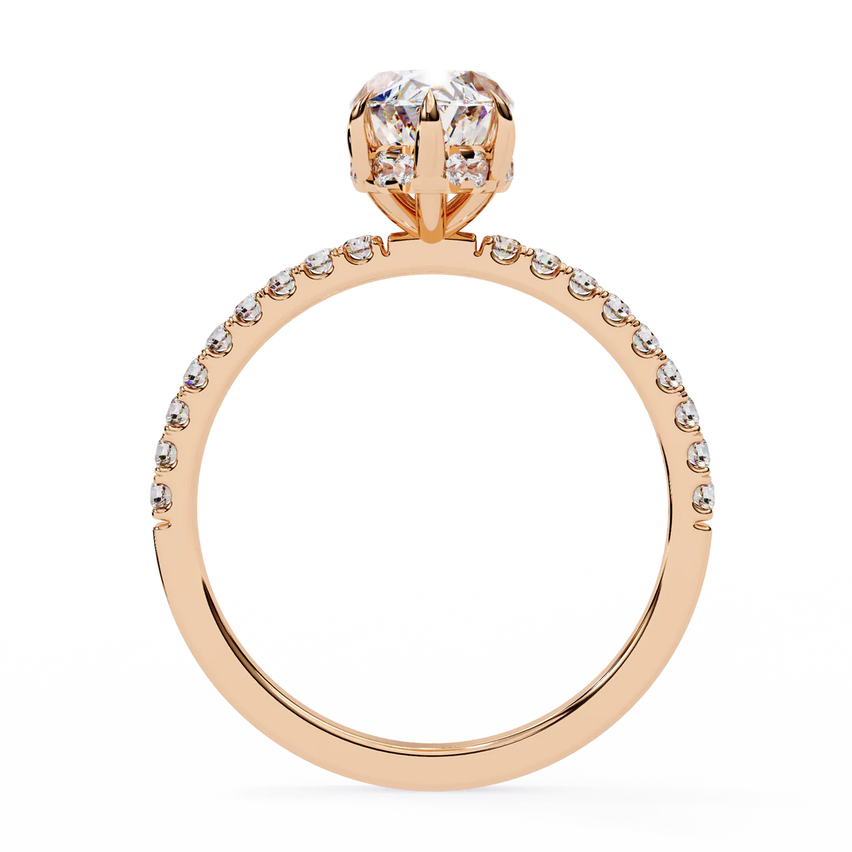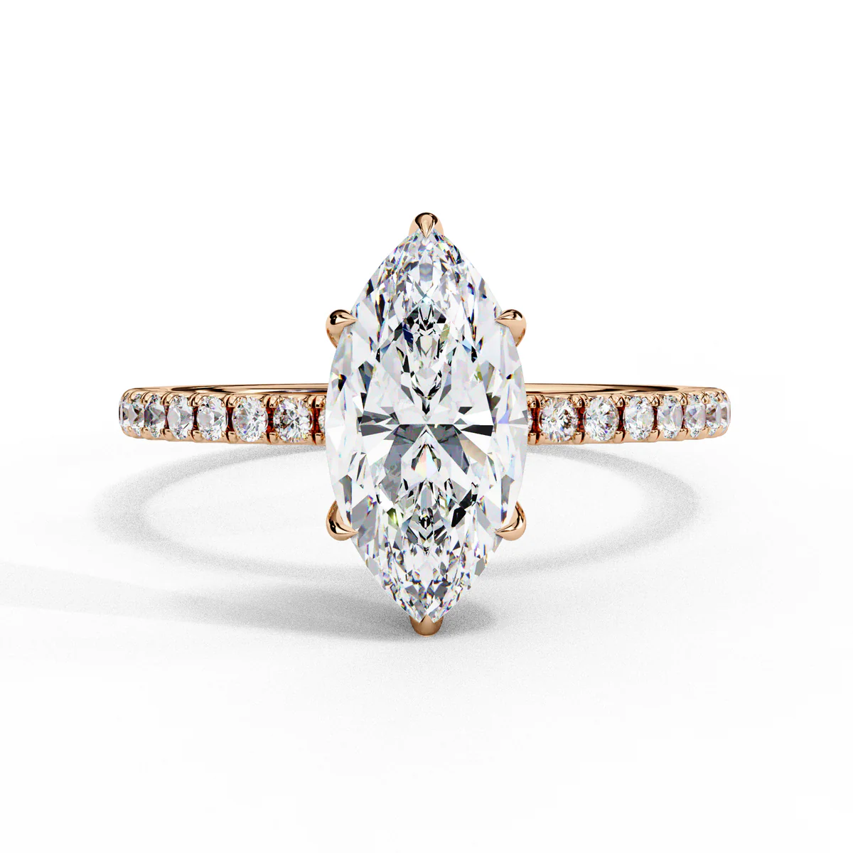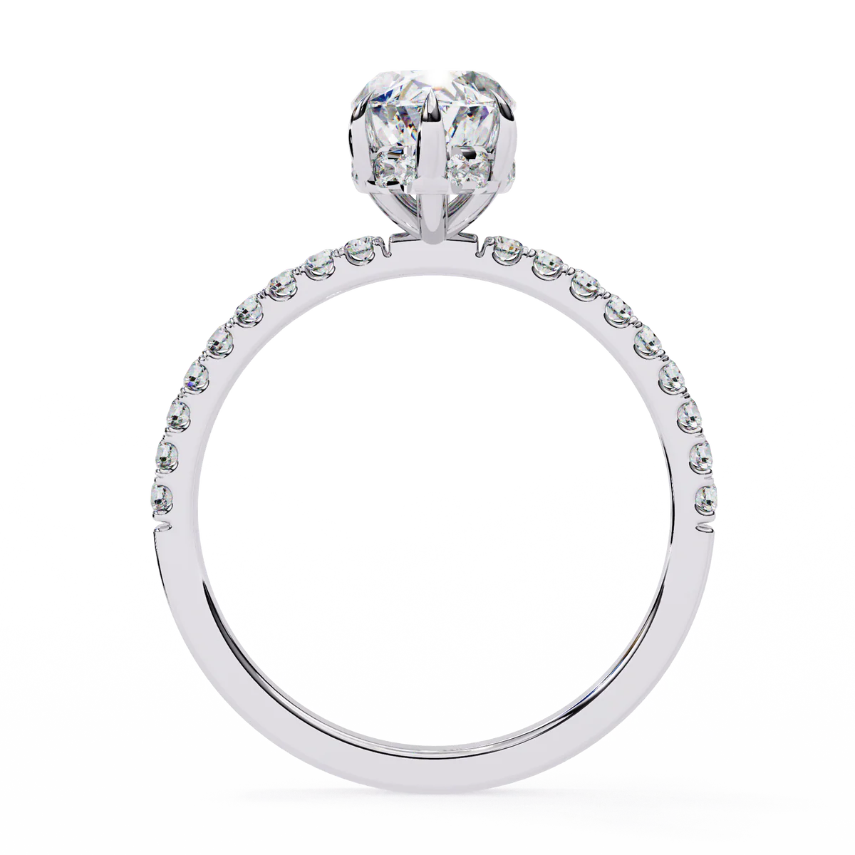 A graceful 1.72 carat lab grown diamond ring featuring a marquise-round arrangement, blending sharp brilliance with soft curves. This romantic, ethical design brings timeless luxury to modern stacking.