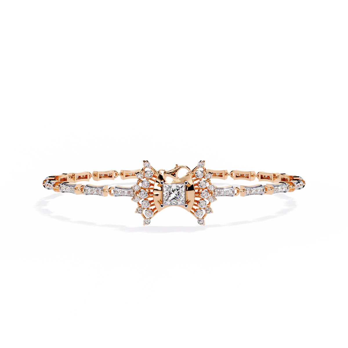 A striking 1.65 carat blend of round and princess-cut diamonds, designed with bold proportions and a structured elegance.