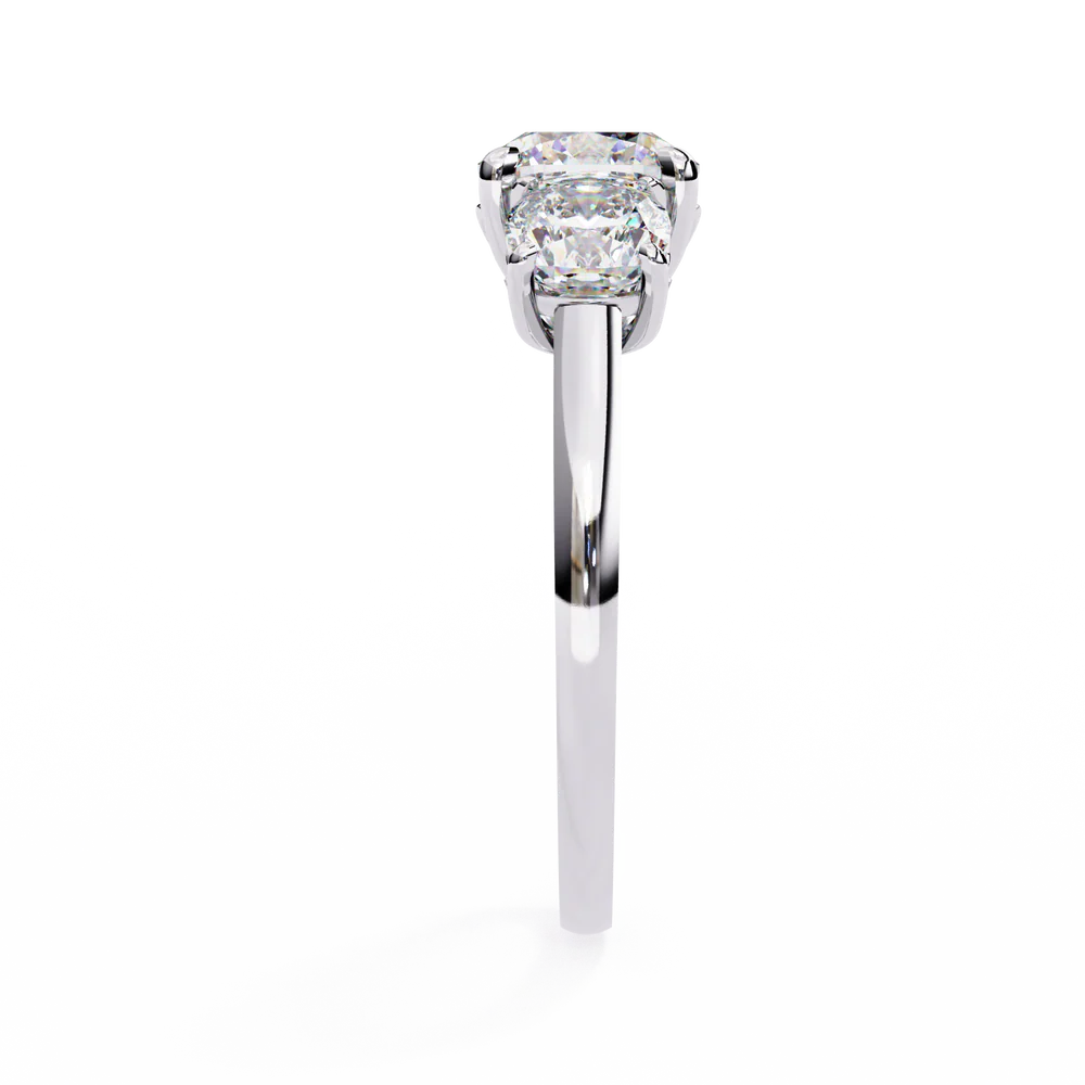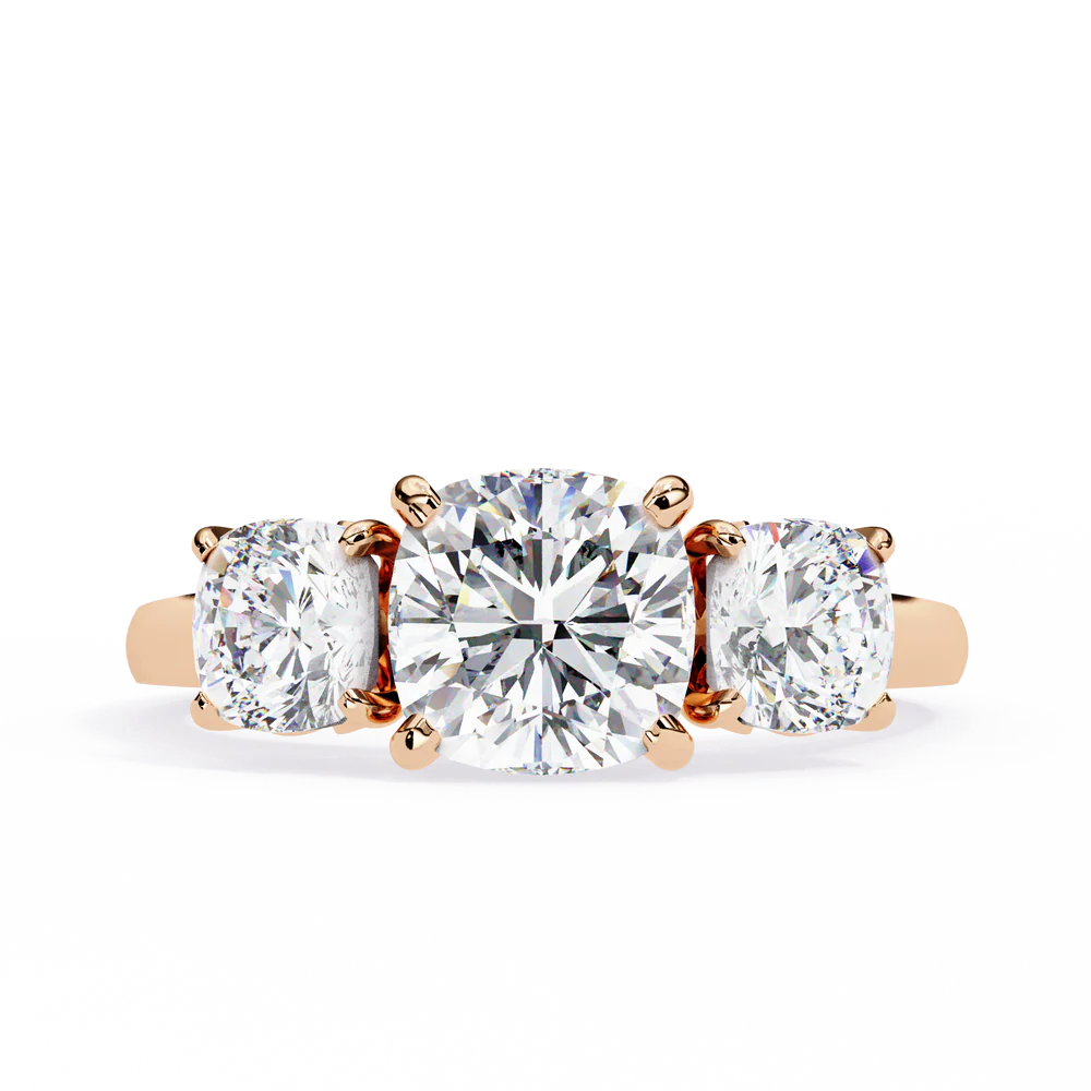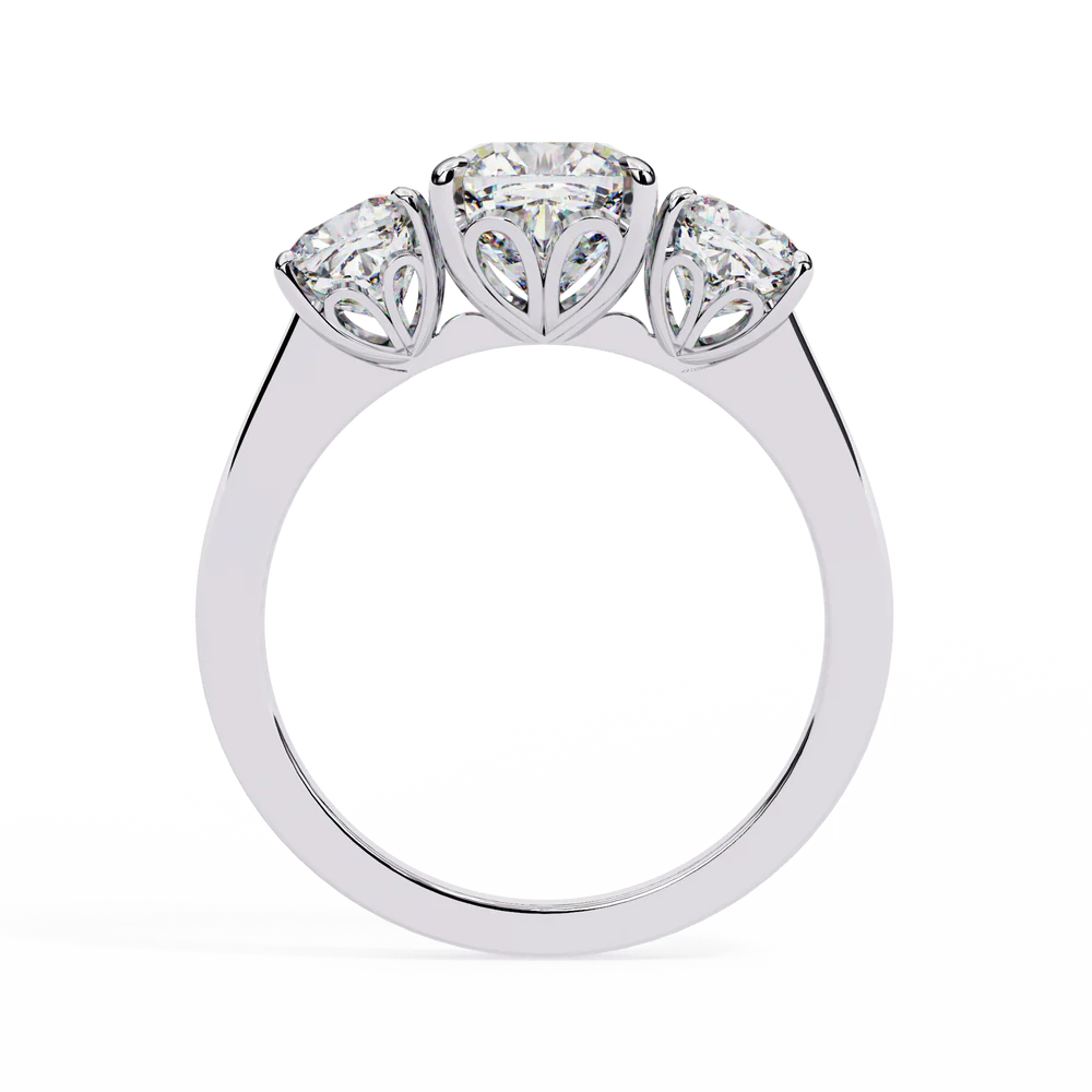 A romantic three-stone 3.96 carat lab grown diamond ring symbolizing the past, present, and future — blooming with love and timeless elegance.